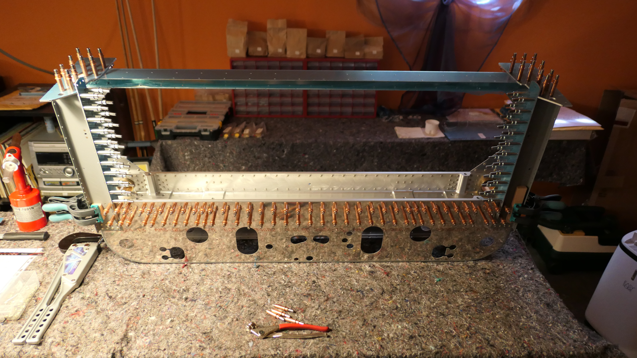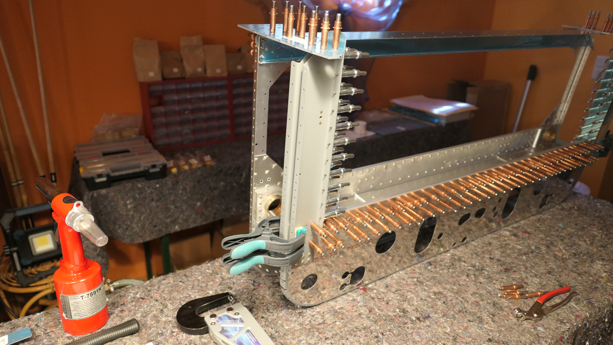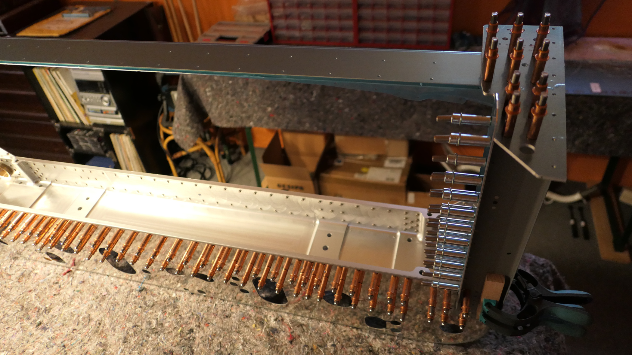Die Teile werden mit Heftnadeln (Clecos) zusammengesetzt