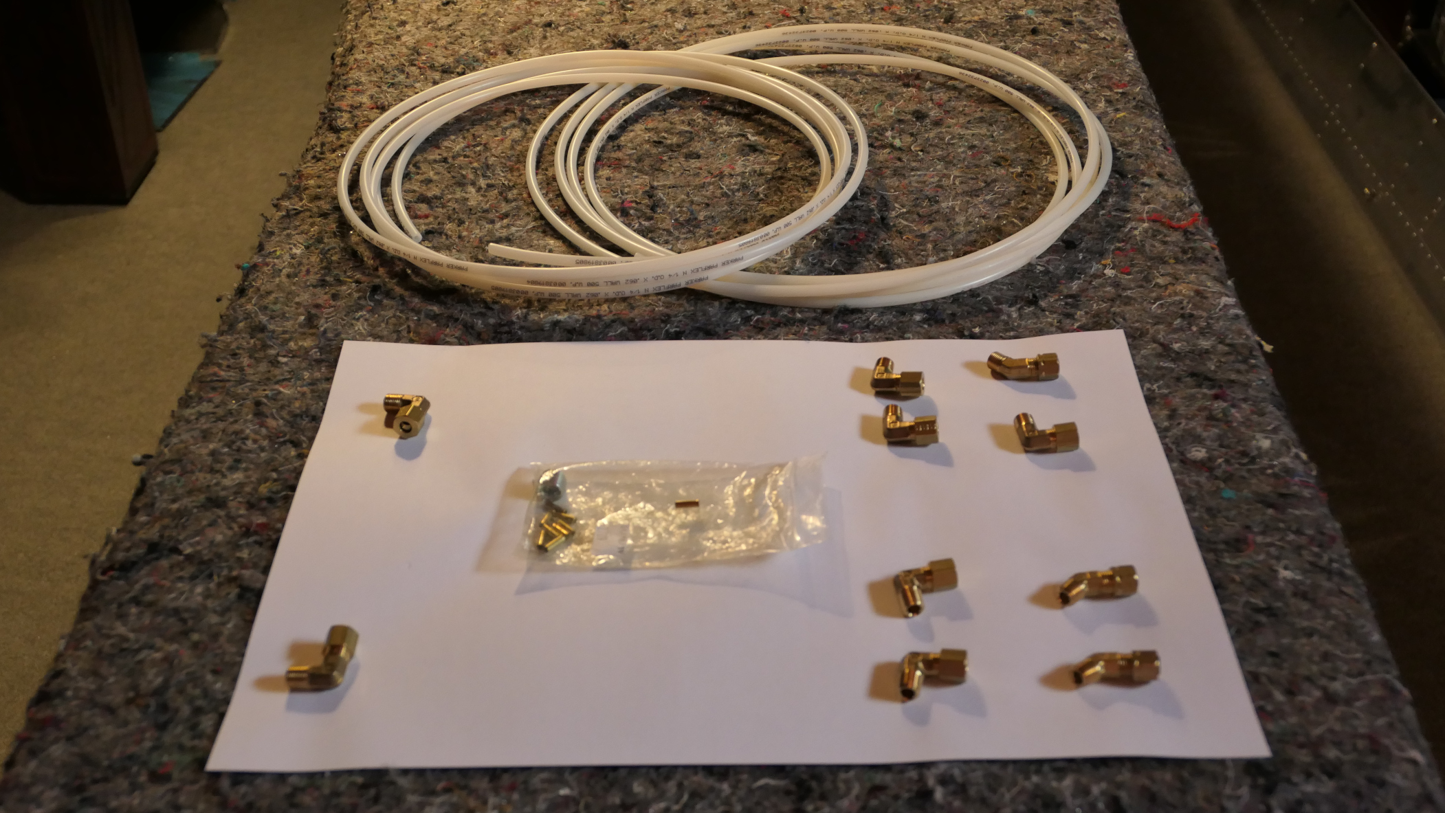 Bremsleitungen abgelängt und Anschlussteile bereit gelegt.