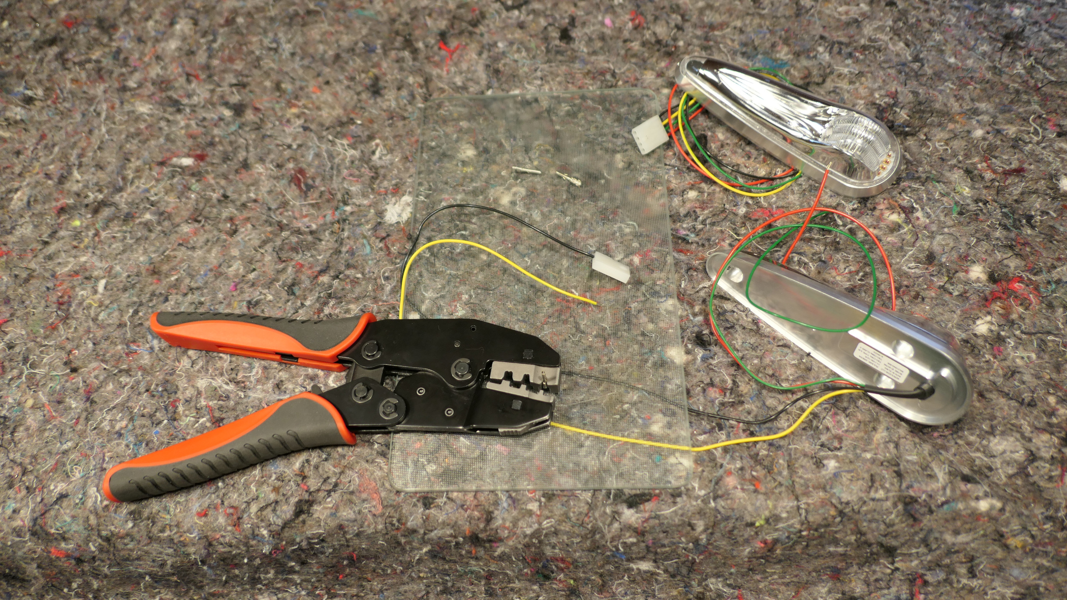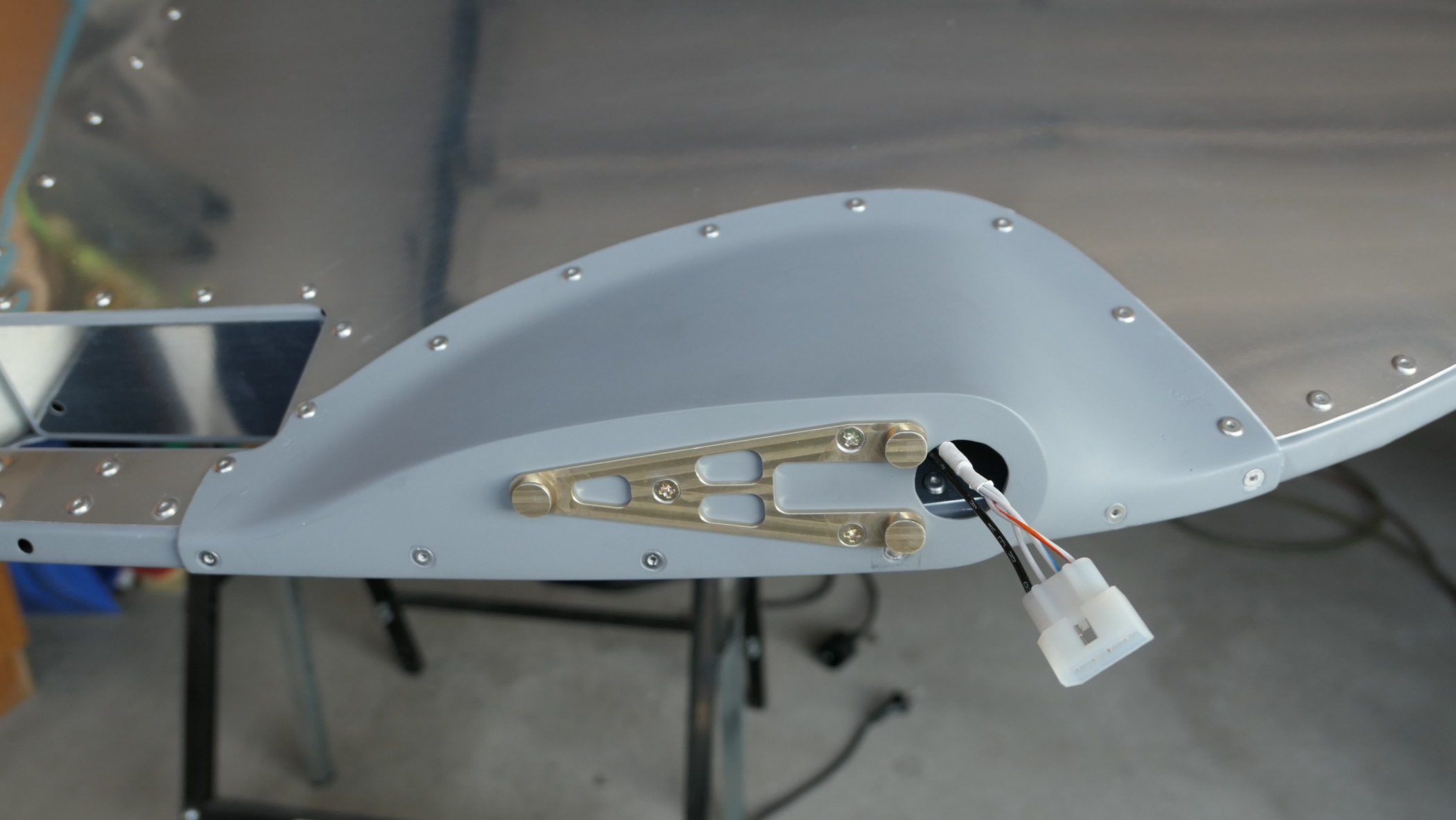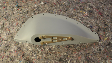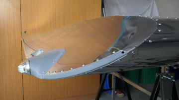 Das Glas für Landing- bzw. Taxilight wird in Positon gehalten, um Bohrungen setzen zu können.