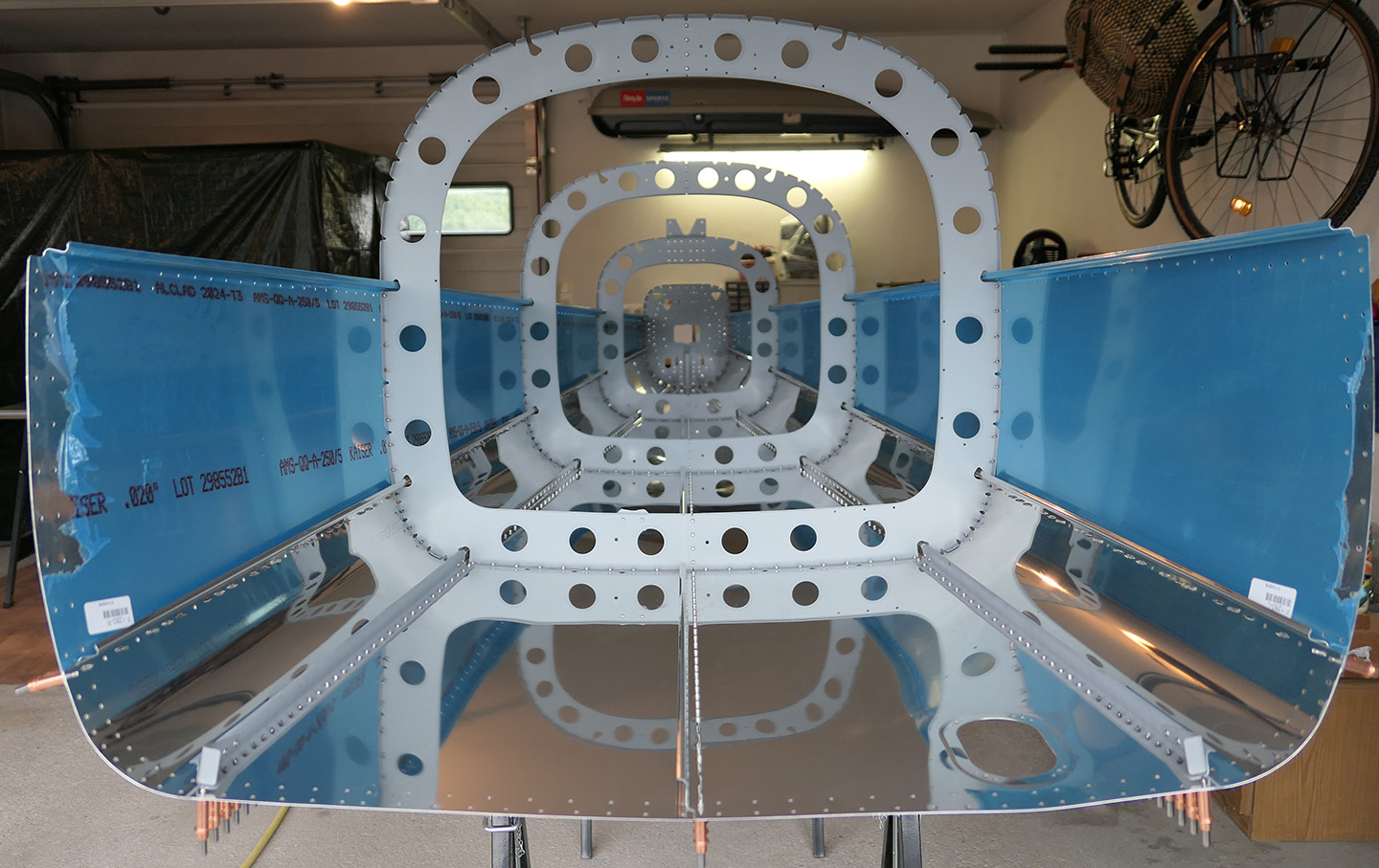 Es müssen Rahmen zusammengesetzt und ausgerichtet werden. Die Rahmen bzw. alle Überlappungen werden grundiert. Die in der Rumpfröhre verlaufenden Kabel und Seilzüge sind später nicht mehr erreichbar und müssen daher entweder vor dem Schließen der Rumpfröhre verlegt werden oder es müssen Leinen eingelegt werden, um diese später einziehen zu können. Natürlich müssen wieder Vorbereitungsarbeiten (Folie entfernen, entgraten, ansenken, Teile trennen, anschleifen, grundieren, ...) durchgeführt werden.