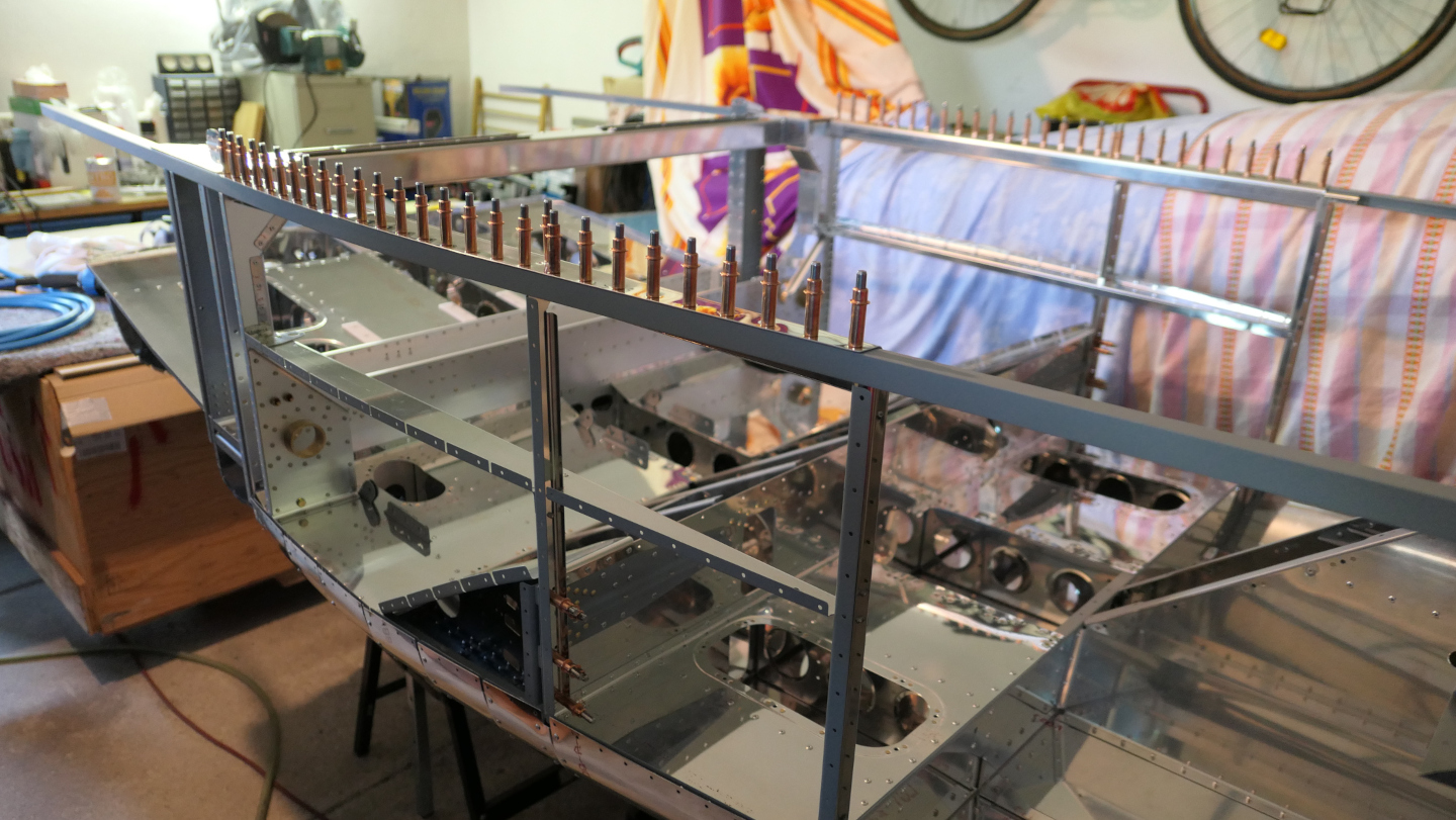In diesem Abschnitt werden Befestigungswinkel montiert (haptsächlich für die Flügelrippen) und noch fehlende Nieten bereits montierter Befestigungswinkel werden gesetzt.